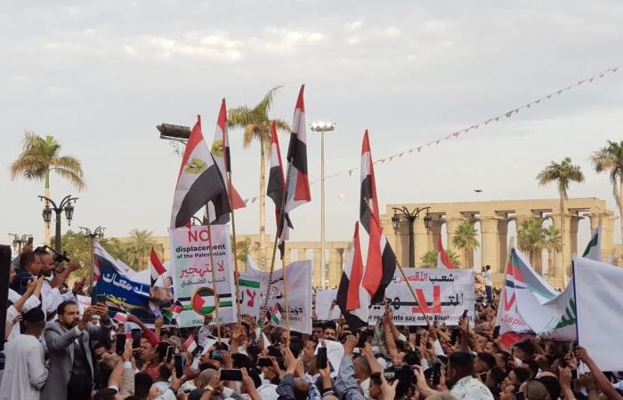 اللافتات والهتافات لدعم الرئيس لرفض تهجير الفلسطينين, اليوم الاثنين 31 مارس 2025 01:58 مساءً