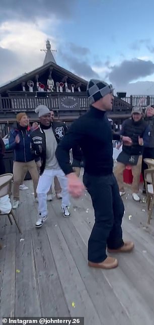 जॉन टेरीने (उजवीकडे) कॉर्चेव्हलच्या बारमध्ये स्वत: चा आणि फ्रेंच नृत्यदिग्दर्शकांचा व्हिडिओ सामायिक केला
