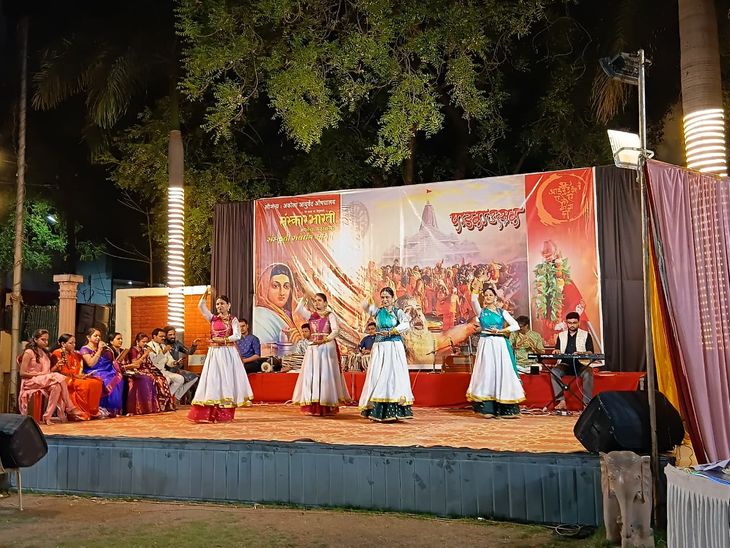 गुढीपाडव्यानिमित्त येथील बाबाजी दाते कला आणि वाणिज्य महाविद्यालय प्रांगणात झालेल्या या कार्यक्रमाचा प्रारंभ “साधयति संस्कार भारती” या ध्येयगीताने झाला. यावेळी प्रेम निनगुरकर, शीतल बोंद्रे, पलक जन्नावार, प्रिया कांडूरवार, सिया अग्रवाल, अनुजा पांचाळ, आसावरी हातगावकर यांनी नृत्य सादर केले. विशुद्ध विद्यालय व वाणिज्य महाविद्यालय ट्रस्टचे अध्यक्ष विनायक दाते, यवतमाळ अर्बन बँकेचे अध्यक्ष डॉ. नितीन खर्चे, संस्कार भारतीचे प्रांत उपाध्यक्ष आनंद कसंबे, प्रांत महामंत्री विवेक कवठेकर, यवतमाळचे अध्यक्ष डॉ. ताराचंद कंठाळे, कार्याध्यक्ष दत्तात्रय देशपांडे, मंत्री कु. अपर्णा शेलार यांच्या हस्ते गुढीपूजन, नटराज पूजन व दीप प्रज्ज्वलन झाल्यानंतर डॉ. कंठाळे यांनी प्रास्ताविकातून कार्यक्रमाची भूमिका विशद केली. विशुद्ध संस्थेचे अध्यक्ष विनायक दाते यांनी सर्वांना नववर्षाच्या शुभेच्छा दिल्या. नववर्ष स्वागतोत्सवाच्या निमित्त आयोजित रील्स व निबंध स्पर्धेतील विजेत्यांना पारितोषिके देण्यात आली. डॉ. कल्पना पांडे लिखित दिव्य दृष्टी या पुस्तकाचे अतिथींच्या हस्ते प्रकाशन करण्यात आले. अमरावती येथे पार पडलेल्या व जागतिक विक्रम स्थापित झालेल्या रांगोळीचे कलावंत अरुण लोणारकर व संजय सांबजवार यांचाही गौरव करण्यात आला. कार्यक्रमाच्या पूर्वार्धाचे सूत्रसंचालन प्रा. डॉ. वैशाली जोशी यांनी तर आभारप्रदर्शन प्रिया कांडूरवार यांनी केले. कार्यक्रमाच्या उत्तरार्धात गजानना गजानना हे गीत कमलेश मुंदेकर यांनी सादर केले. त्यावर शीतल बोंद्रे, रिद्धी कांडूरवार, पलक जन्नावार, जुगल राठोड, मीनल चिकाटे, अक्षरा कोठारी, अविका पुरोहित, देवांशी येवले यांनी नृत्य प्रस्तुती केली. भाग्यश्री खानोदे हिने पद्मनाभा नारायणा, अपर्णा शेलारने विष्णुमय जग, साक्षी काळे हिने संत भार पंढरीत, तर पूर्णाजी खानोदे यांनी पतितपावन नाम ऐकुनी जातो मी गावा हा अभंग सादर केला. त्याचवेळी धवल रोहणे, आभा बापट, श्रीपाद बापट, अभय राठोड, आराध्य पांढरे, निशांत पांढरे, अक्षित राजूरकर, रुही राजूरकर या कलावंतांनी संतांचा प्रसंग सादर केला.