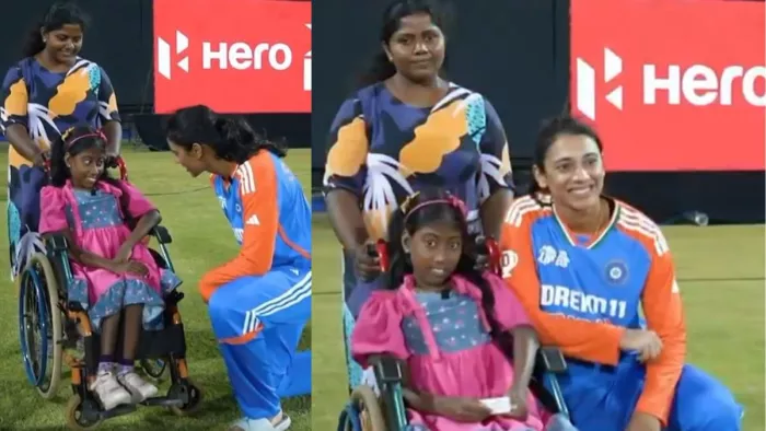 स्पोर्ट्स डेस्क, नई दिल्ली। श्रीलंका क्रिकेट के आधिकारिक सोशल मीडिया हैंडल पर स्मृति मंधाना का एक शानदार अपलोड किया गया है। इस वीडियो में स्मृति मंधाना को पाकिस्तान के खिलाफ जीत दर्ज करने के बाद व्हीलचेयर पर बैठी एक लड़की को एक फोन उपहार में देते हुए देखा जा सकता है। वहीं, लड़की की मां ने स्मृति मंधाना की की तरीफ की।